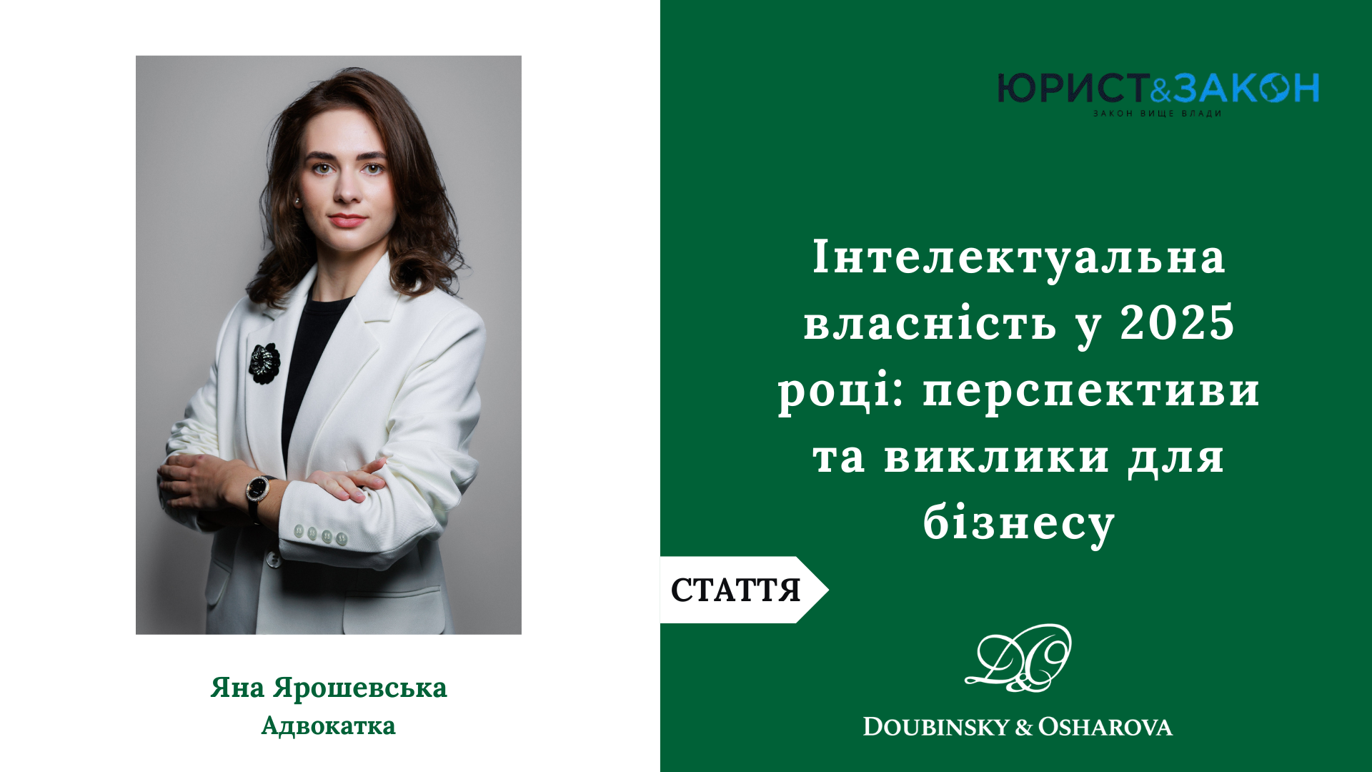 У аналітичній статті для видання ЮРИСТ&ЗАКОН адвокатка "Дубинський і Ошарова" Яна Ярошевська поділилася власним поглядом на перспективи інтелектуальної власності у 2025 році.