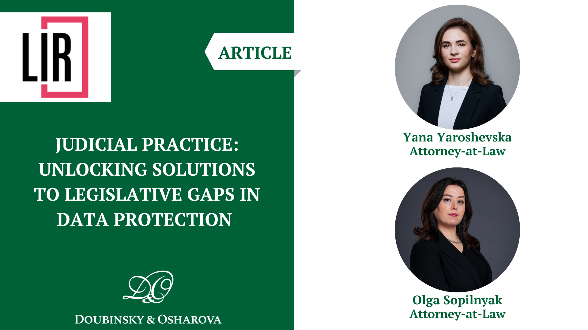 Адвокатки «Дубинський і Ошарова» Яна Ярошевська та Ольга Сопільняк стали співавторками статті “Судова практика: пошук шляхів усунення законодавчих прогалин у сфері захисту персональних даних” для 6-го видання Legal Industry Reviews Ukraine.