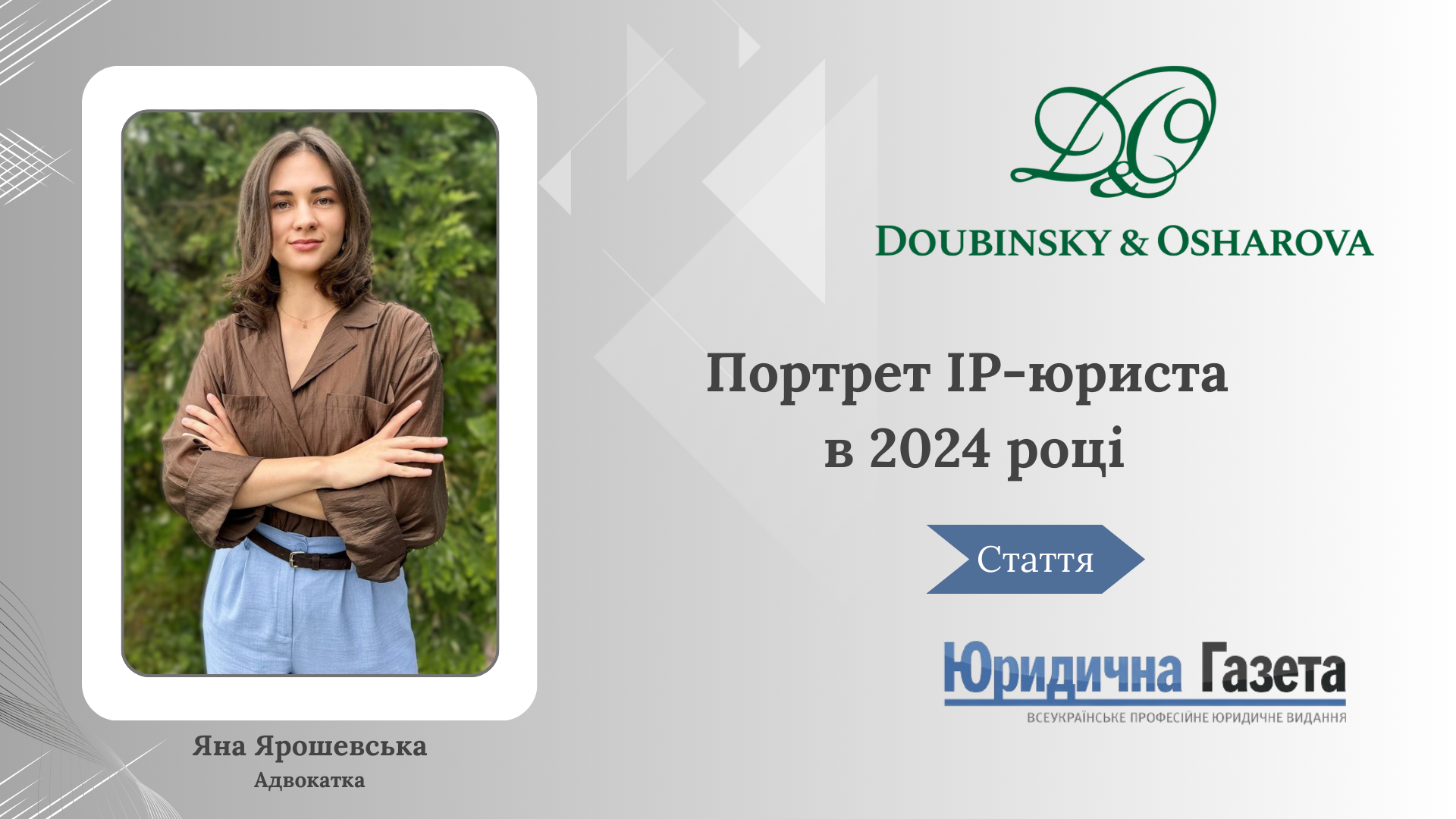 У своїй статті для "Юридичної газети" Яна Ярошевська, практикуюча адвокатка "Дубинський і Ошарова", розглядає сучасні виклики, з якими стикаються юристи, та необхідні навички для успішної професійної діяльності в умовах швидких змін.