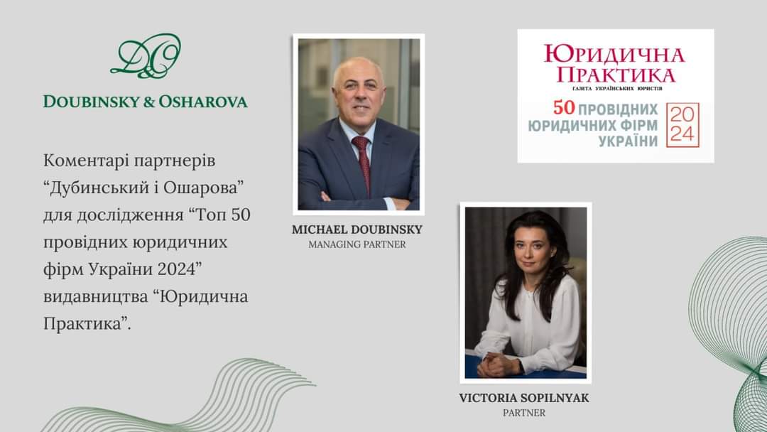 Керуючий партнер «Дубинський і Ошарова» Михайло Дубинський і партнерка Вікторія Сопільняк у коментарі для дослідження «ТОП-50 провідних фірм України» видавництва Юридична Практика висловили своє бачення положення справ у IP сфері у 2023 році, розповіли про виклики, з якими стикається IP ринок під час війни та висловили прогнози щодо ключових тенденцій в IP галузі на 2024 рік.