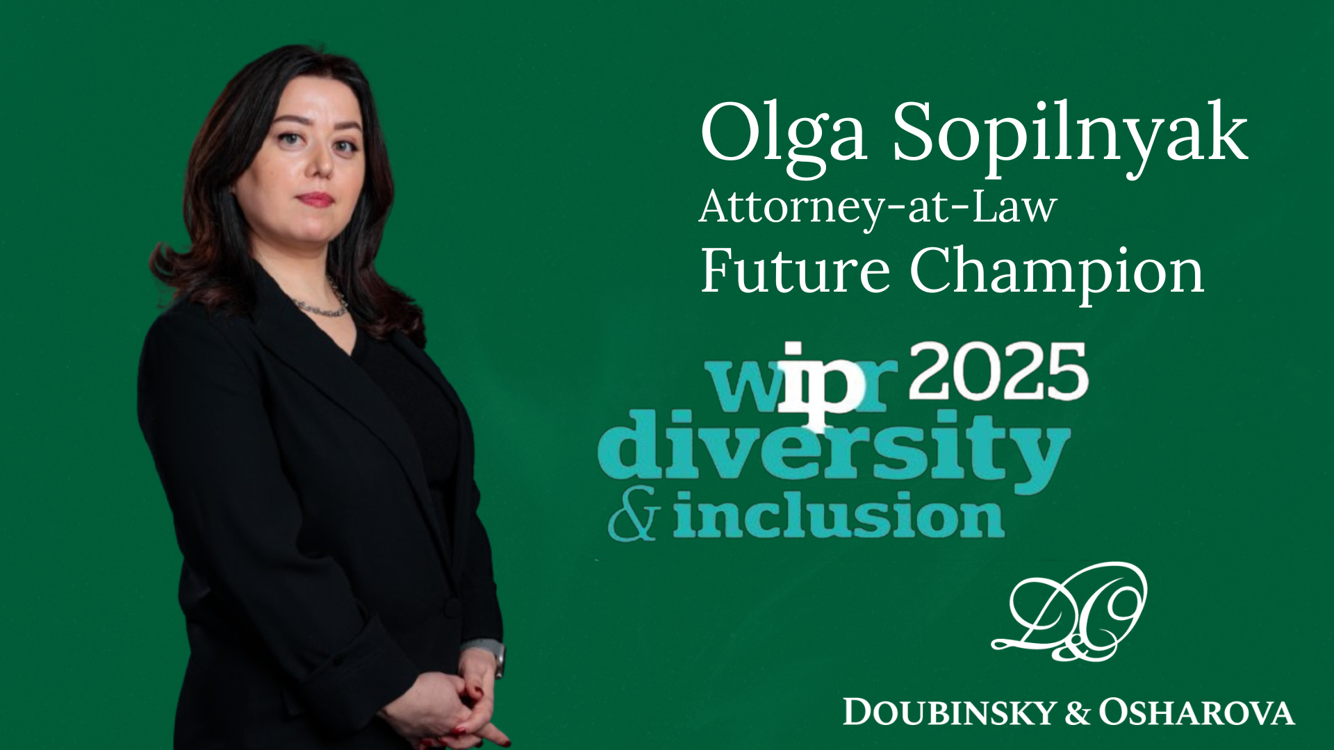 З гордістю повідомляємо, що адвокатка «Дубинський і Ошарова» Ольга Сопільняк увійшла до міжнародного рейтингу WIPR Diversity's Top 100 2025 — і стала єдиною представницею України у престижній категорії Future Champions.