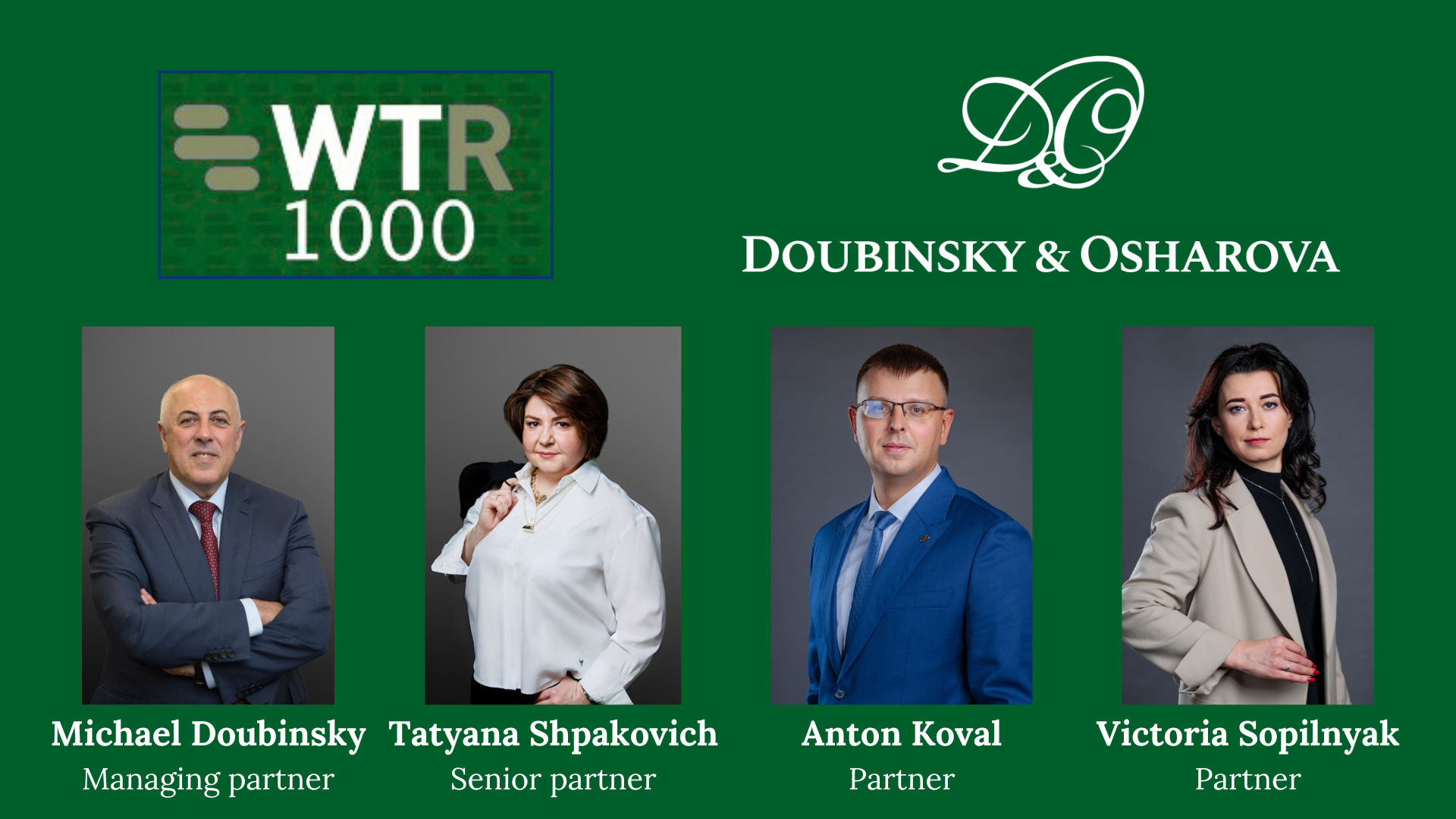 Doubinsky & Osharova вчергове відзначена міжнародним рейтингом World Trademark Review 1000 серед провідних IP-фірм України.