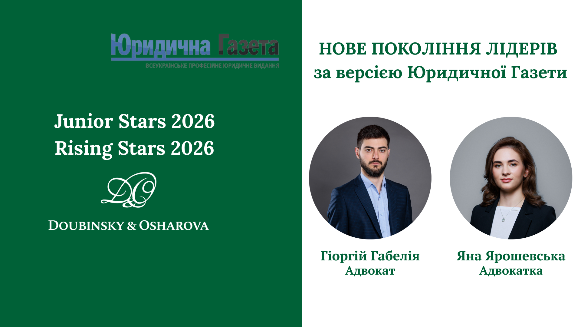 Одразу два юристи «Дубинський і Ошарова» були відзначені у щорічних рейтингах «Юридичної газети», що досліджують нове покоління професіоналів українського юридичного ринку.