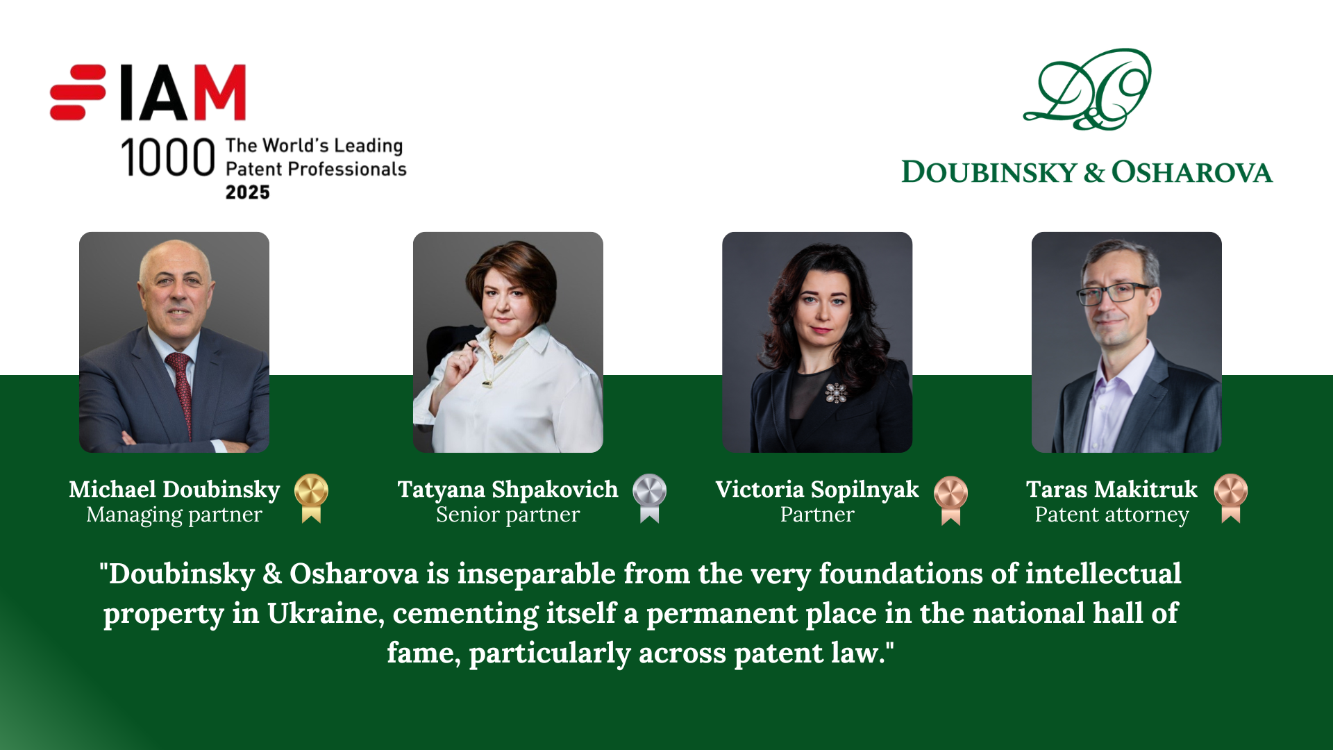 Doubinsky & Osharova has been ranked in the Gold tier of the IAM Patent 1000 2025 – a prestigious international guide to the world’s leading patent professionals.