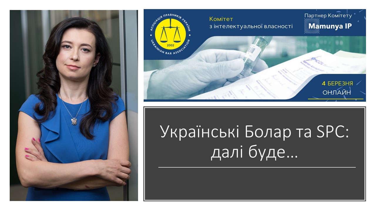 On March 4, 2021, the Intellectual Property Committee and the Pharmaceutical Law Committee of the Ukrainian Bar Association held an online meeting «Ukrainian Bolar and SPC». Victoria Sopilnyak, partner of Doubinsky & Osharova with an extensive experience of protection of intellectual property rights of pharmaceutical companies, participated in the discussion.